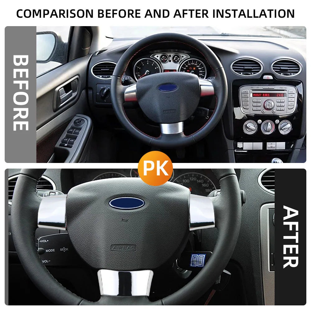 Rivestimento volante Ford Focus 2 MK2, coperture pannello pulsanti cromate in ABS a 3 pezzi