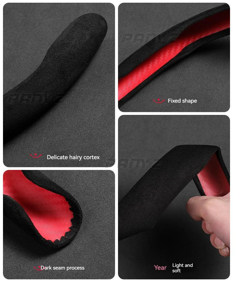 - Materiale: Tessuto simile alla pelle scamosciata con una texture in fibra di carbonio; superficie antiscivolo, traspirante e assorbente del sudore.