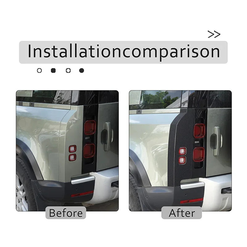 Aggiorna l'illuminazione posteriore del tuo Land Rover Defender con questi Adesivi per la Cornice della Luce Fendinebbia Posteriore in PVC nero. Progettati specificamente per i modelli Defender 90, 110 e 130 dal 2020 al 2023, questi rivestimenti interni aggiungono un elegante accento nero a basso profilo proteggendo l'area della luce fendinebbia da graffi e usura. Realizzati in PVC di alta qualità e prodotti in una fabbrica certificata ISO9001, offrono uno stile durevole e di montaggio pulito che si integra con le linee del veicolo. Tutte le apparecchiature elettroniche e meccaniche, dispositivi e macchinari venduti da InterCyprus ai paesi UE sono certificati CE e hanno una garanzia di due anni. Su intercyprus.com dal 2002 — affidabili per qualità e affidabilità.