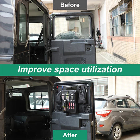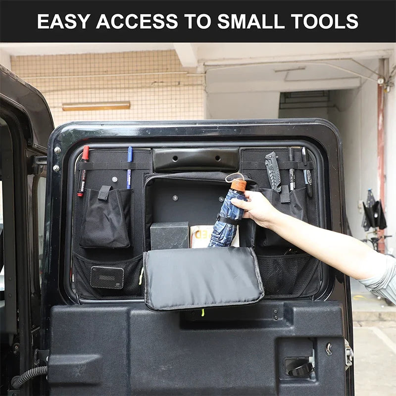 Realizzato in tessuto Oxford di alta qualità, offre resistenza a graffi e usura e aggiunge un tocco pratico e ordinato all'interno della tua auto. L'organizer è facile da installare grazie al forte retro adesivo biadesivo ed è conforme agli standard di qualità ISO 9001, garantendo affidabilità e durata nel tempo. Conferma la compatibilità confrontando con le immagini del prodotto prima dell'installazione sul tuo veicolo.