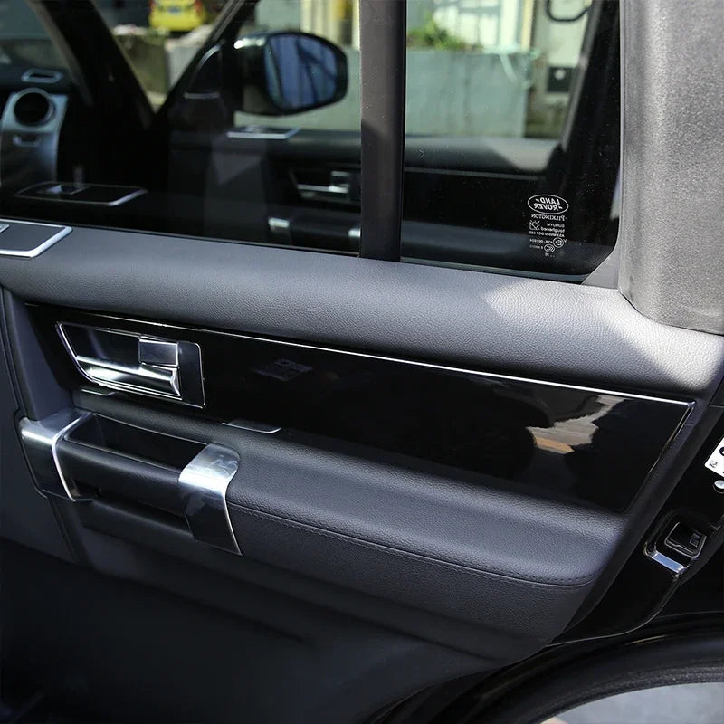 - 1 x Adesivo decorativo per pannello porta interno per Land Rover Discovery 4 LR4 (2010-2016), ABS, Nero / Argento / Effetto legno nero, con retro adesivo automobilistico.
