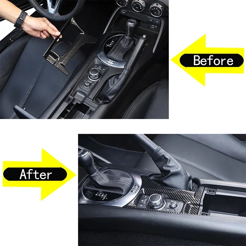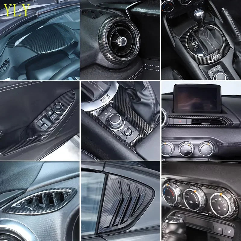 Aggiorna l'interno della tua Mazda MX-5 MX5 ND con la Copertura Centrale Cruscotto in Fibra di Carbonio. Progettata per i modelli 2016-2025, questa copertura centrale in plastica ABS di alta qualità offre un aspetto elegante in fibra di carbonio proteggendo il cruscotto da graffi e usura. La sua installazione facile e senza problemi utilizza nastro adesivo automobilistico preapplicato, rendendola un rapido aggiornamento visivo che migliora la sensazione complessiva della tua abitacolo.