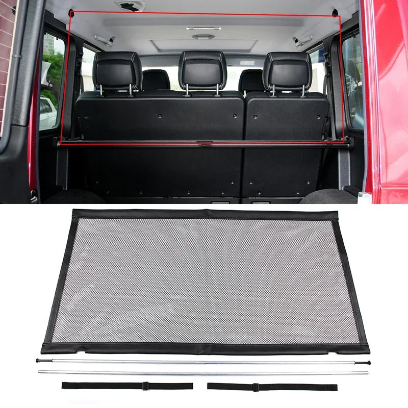 La rete divisoria per animali domestici nel bagagliaio Mercedes Benz G Class è una barriera protettiva pratica progettata per mantenere gli animali al sicuro nell'area del bagagliaio preservando l'interno elegante della tua G-Class. Realizzata in poliestere di alta qualità con componenti metallici robusti, questa protezione interna protegge da graffi, usura e sporco, aiutandoti a mantenere uno spazio di carico pulito e a proteggere il tuo investimento. È compatibile con i modelli Mercedes-Benz G-Class W463 2004-2018 e G-Class W464 2019-2021, integrandosi perfettamente con il design del veicolo per un aspetto ordinato e raffinato.