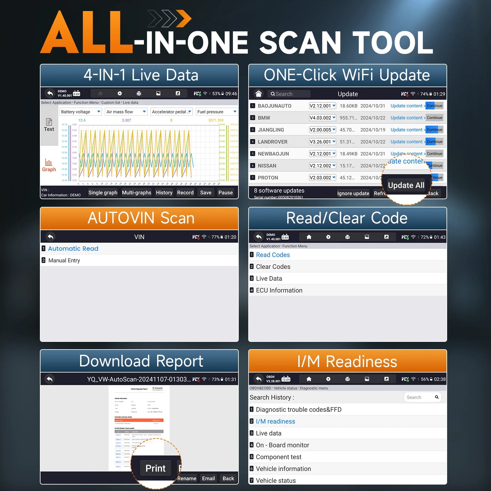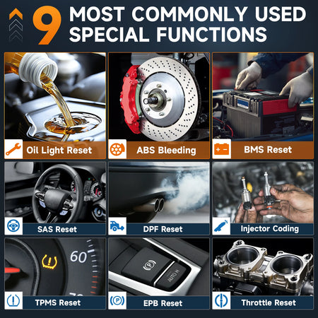 - Nove servizi di reset includono Reset Spia Olio, Spurgo ABS, Abbinamento Batteria e altro—per una manutenzione efficiente ed evitare viaggi inutili in officina.