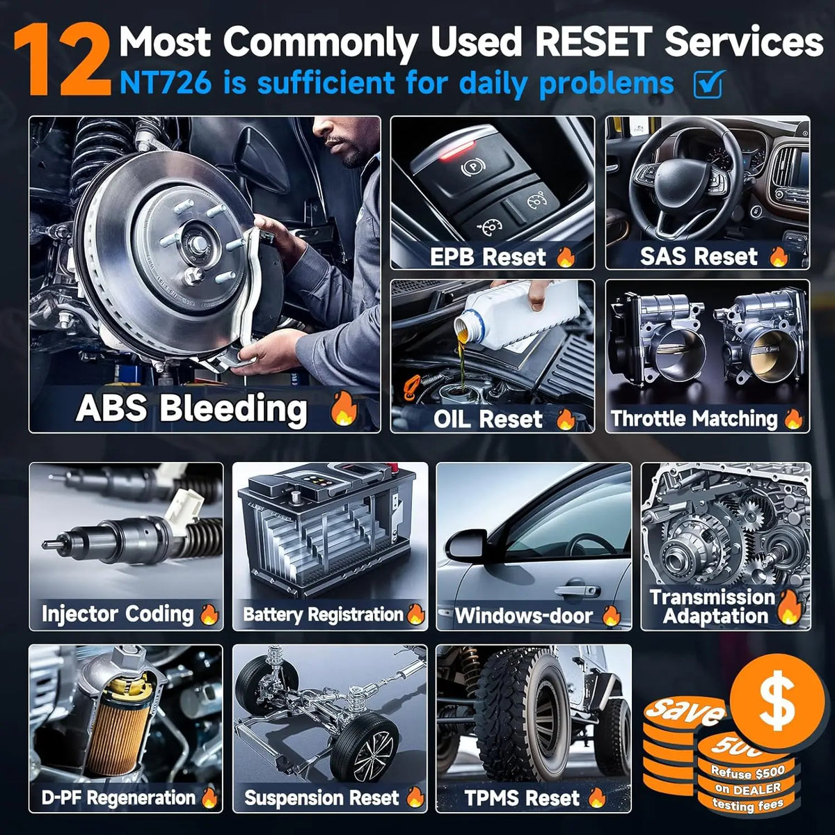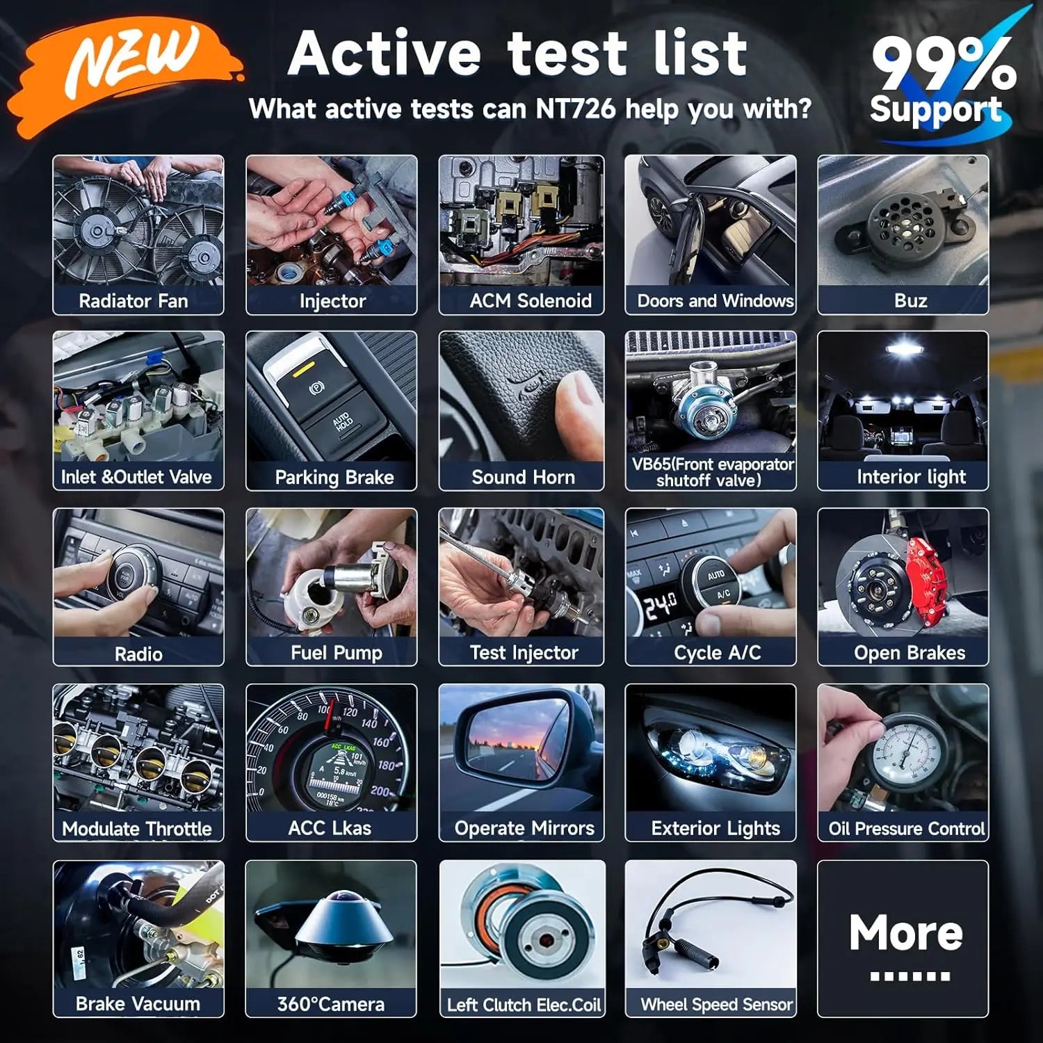Scopri il FOXWELL NT726 All-System Bidirectional OBD2 Scanner, uno strumento diagnostico versatile progettato sia per appassionati fai-da-te che per tecnici professionisti. Il suo ampio schermo touch da 5,5 pollici offre immagini nitide e navigazione intuitiva, mentre il controllo bidirezionale consente di attivare componenti per verificare le riparazioni in tempo reale. Con aggiornamenti gratuiti a vita via WiFi, il NT726 rimane aggiornato con gli ultimi modelli di veicoli e procedure di sistema, aiutandoti a diagnosticare con sicurezza e risparmiare tempo e denaro. Questo scanner completo legge e cancella codici per tutte le ECU del veicolo, inclusi Motore, Trasmissione, ABS, SRS, EPB, Immobilizer, IC, DSC, HVAC e altro. Offre inoltre lettura Auto VIN, report stampabili e dati in tempo reale in formato grafico o testuale, così puoi individuare il problema esatto e monitorare come le riparazioni influenzano le prestazioni. Oltre alle funzioni principali, il NT726 offre 12 capacità di manutenzione per interventi pratici sul posto, tra cui Registrazione batteria, Reset sospensioni, Adattamento trasmissione e reset finestrini-portiere, rendendolo una soluzione potente all-system per garage domestici, officine e professionisti dell'automotive.