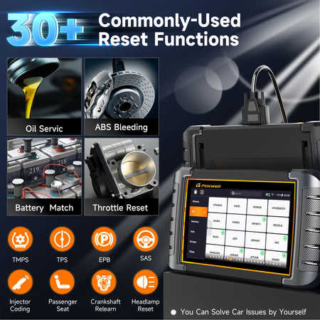 - Oltre 30 reset di servizio: esegui operazioni di manutenzione essenziali tra cui SAS, EPB, BRT, CVT, reset del servizio olio, rigenerazione DPF, TPS, TPMS, codifica iniettori, apprendimento marce, regolazione A/F, abbinamento sedili, PFP e adattamento frizione — oltre a spurgo ABS e altro ancora.