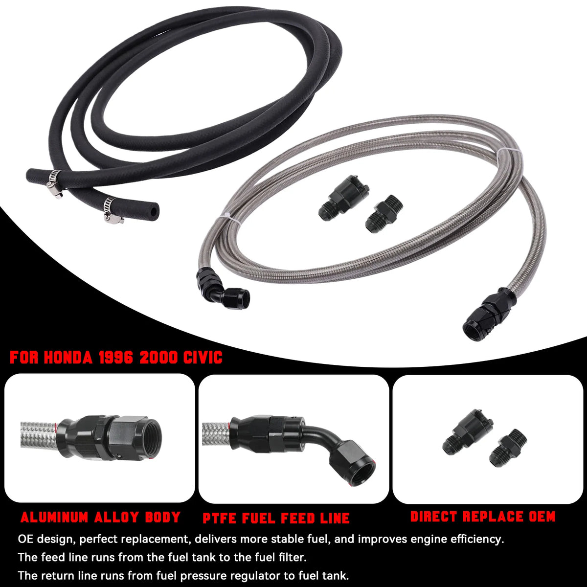 Linea di alimentazione del carburante e ritorno in gomma per Honda Civic 1996-2000 in acciaio inossidabile e lega di alluminio