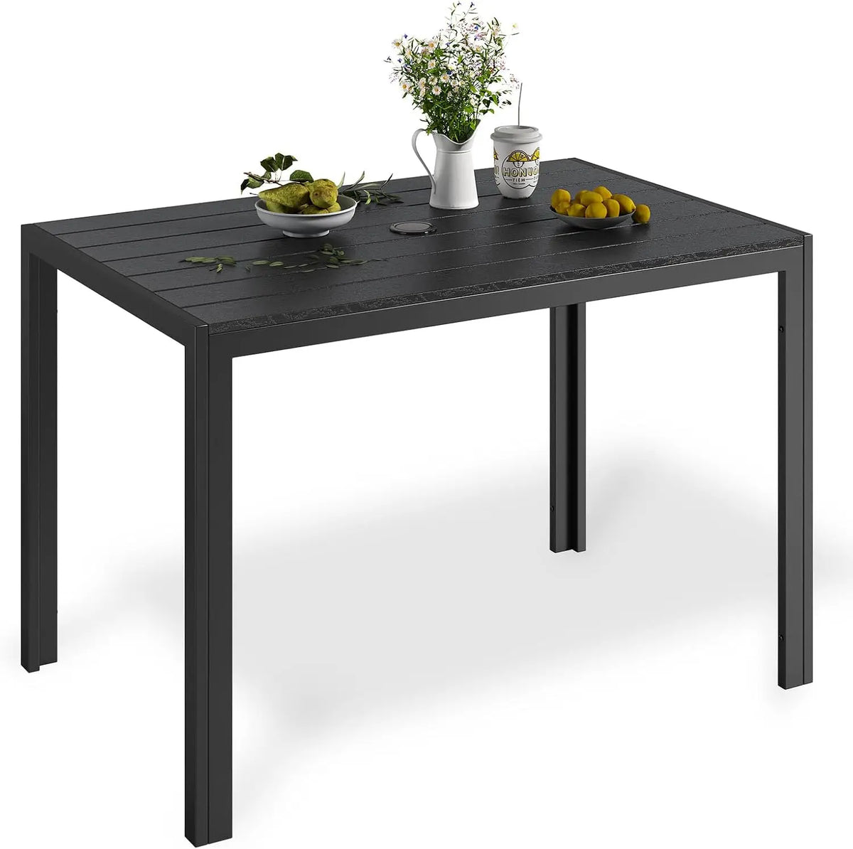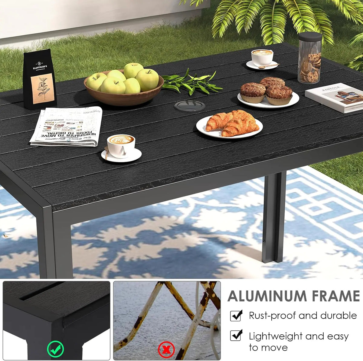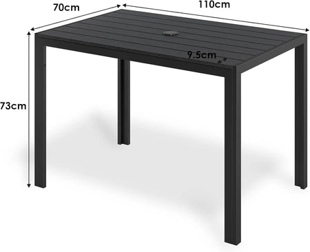 Tavolo da Giardino in Alluminio Rettangolare con Foro per Ombrellone 110x70cm