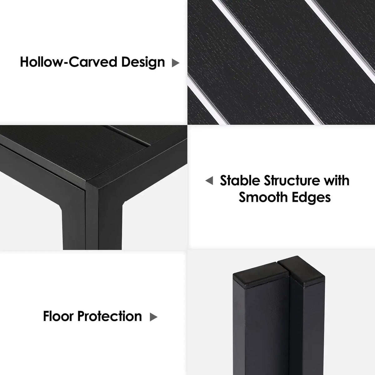 - Materiale del piano: Superficie in legno plastico a strisce (WPC) – impermeabile, resistente allo sbiadimento, resistente al sole