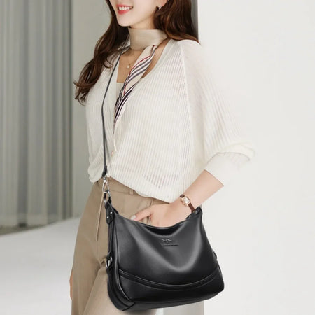 Borsa a spalla da donna in pelle morbida con borsa a tracolla, borsa tote tinta unita per lavoro e viaggio