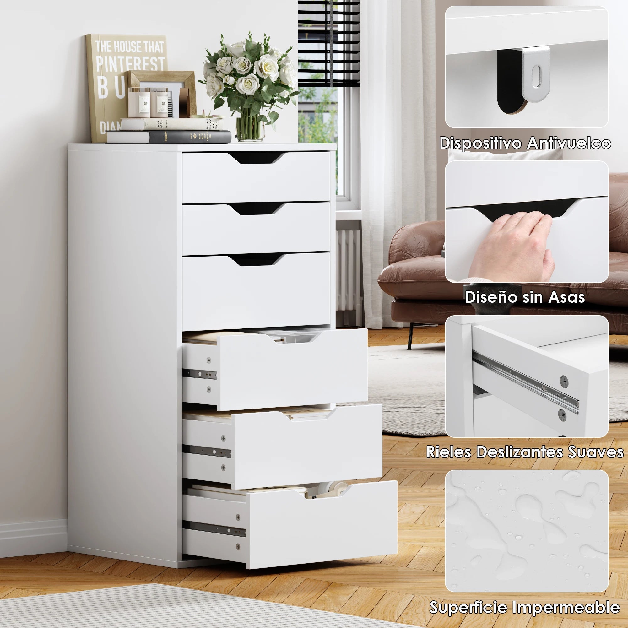 Cassettiera Alta Bianca a 6 Cassetti per Camera da Letto