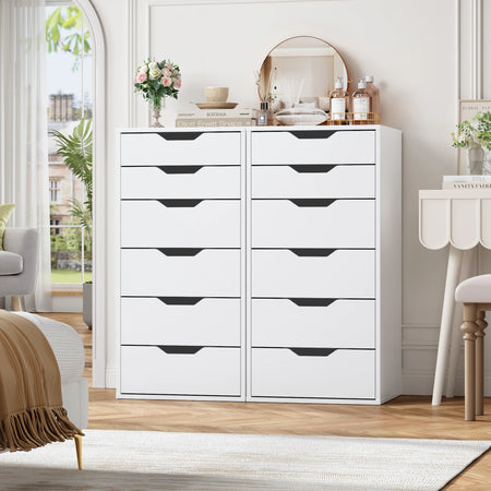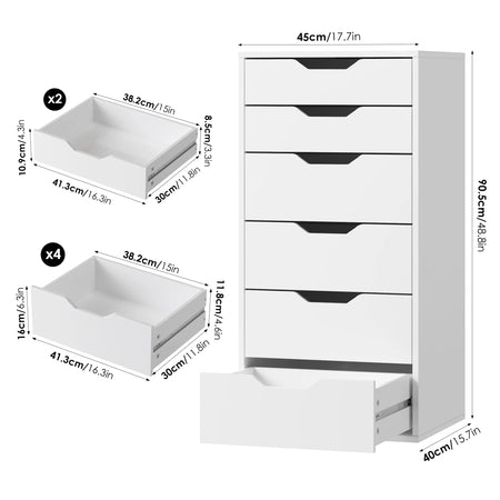Progettato per un uso versatile, questo cassettone è costruito con pannelli MDF di alta qualità per durabilità. Le dimensioni interne dei cassetti sono: cassetti grandi 38,5x28,7x10,5 cm; cassetti piccoli 38,5x28,7x7 cm, offrendo opzioni di stoccaggio chiare e pratiche e facile accesso agli oggetti.