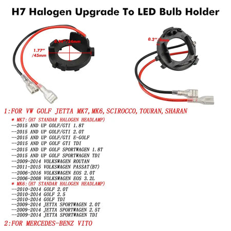 - Per l'uso con lampadine LED H7 e alloggiamenti dei fari compatibili solo.