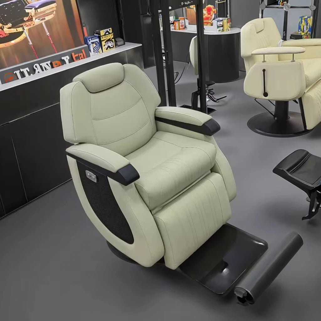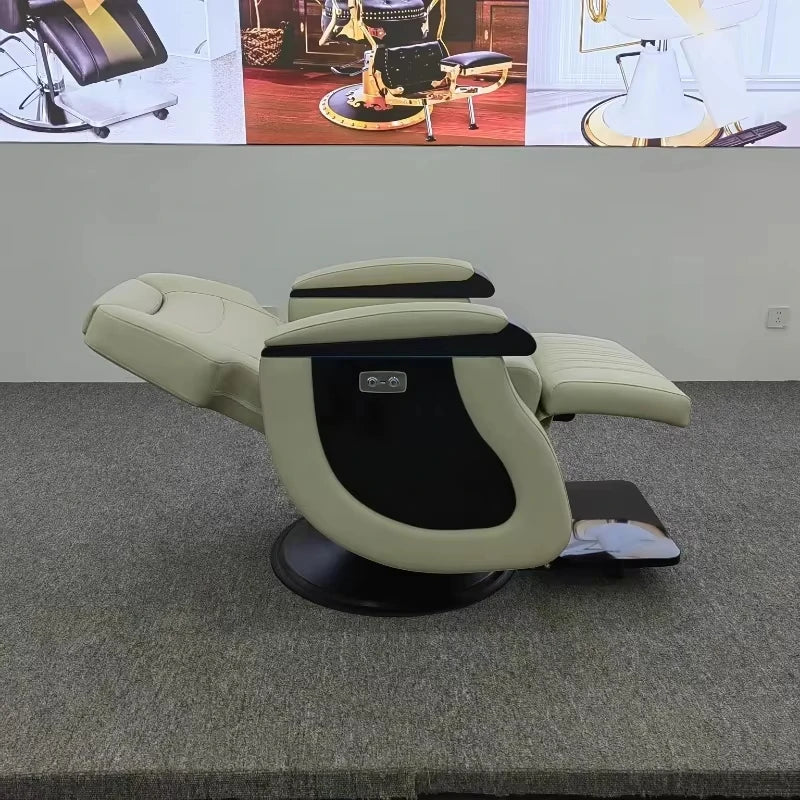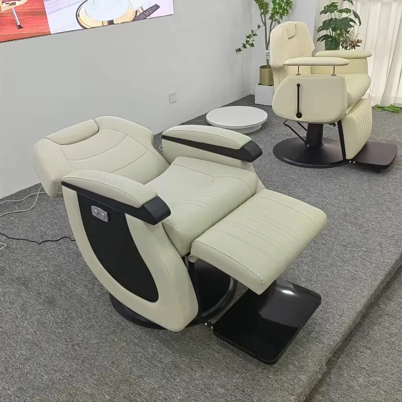 Sedia da barbiere moderna elettrica regolabile in pelle beige