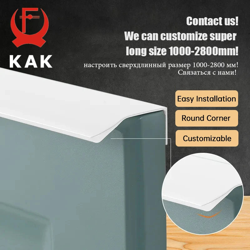 Le Maniglie per Cassetti in Alluminio Nascoste Bianche di KAK offrono un aggiornamento elegante e moderno per armadi, cassetti e mobili. Realizzate in lega di alluminio durevole con una finitura bianca impeccabile, queste maniglie nascoste creano un aspetto minimalista e senza soluzione di continuità, offrendo al contempo una presa affidabile e un funzionamento fluido. Il design nascosto riduce il disordine e gli impigli, rendendo le attività quotidiane in cucina, bagno o guardaroba senza sforzo. Che tu stia ristrutturando una cucina o aggiornando i mobili, queste maniglie si integrano con una varietà di colori e stili, migliorando sia la forma che la funzione.