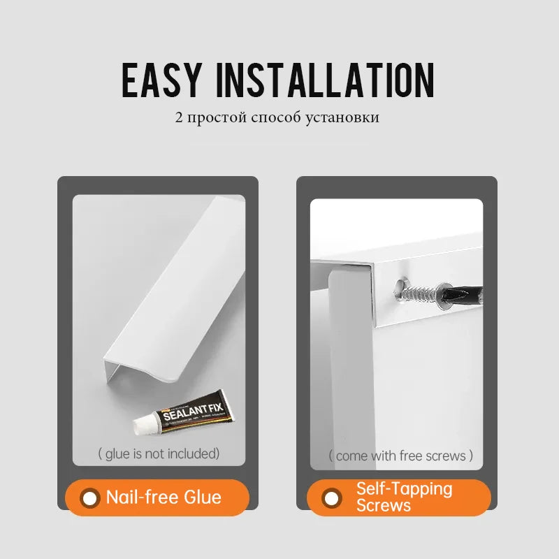 Con opzioni di lunghezza personalizzabili fino a 2800mm e diverse distanze tra i fori, puoi adattare queste maniglie per adattarsi ai fori preforati esistenti o creare una nuova installazione su nuovi mobili. Sono adatte per porte singole o doppie e possono essere installate utilizzando colla senza chiodi o viti autofilettanti. Le viti sono fornite gratuitamente; la colla non è inclusa. Installa con colla senza chiodi o viti autofilettanti—nessuna perforazione richiesta per aggiornamenti rapidi. La finitura bianca moderna completa una gamma di decorazioni ed è facile da mantenere con una semplice cura.