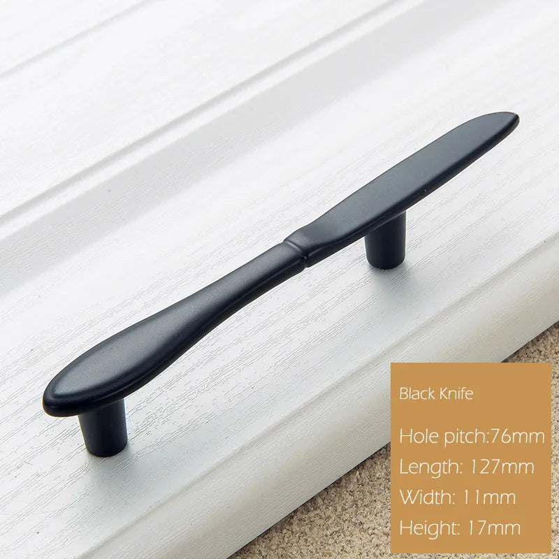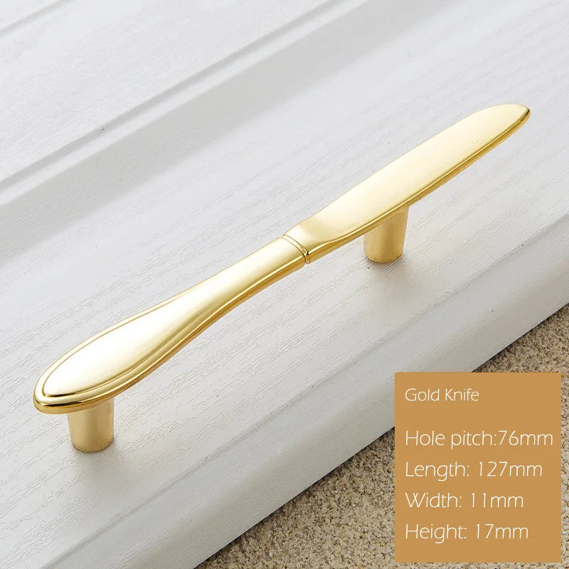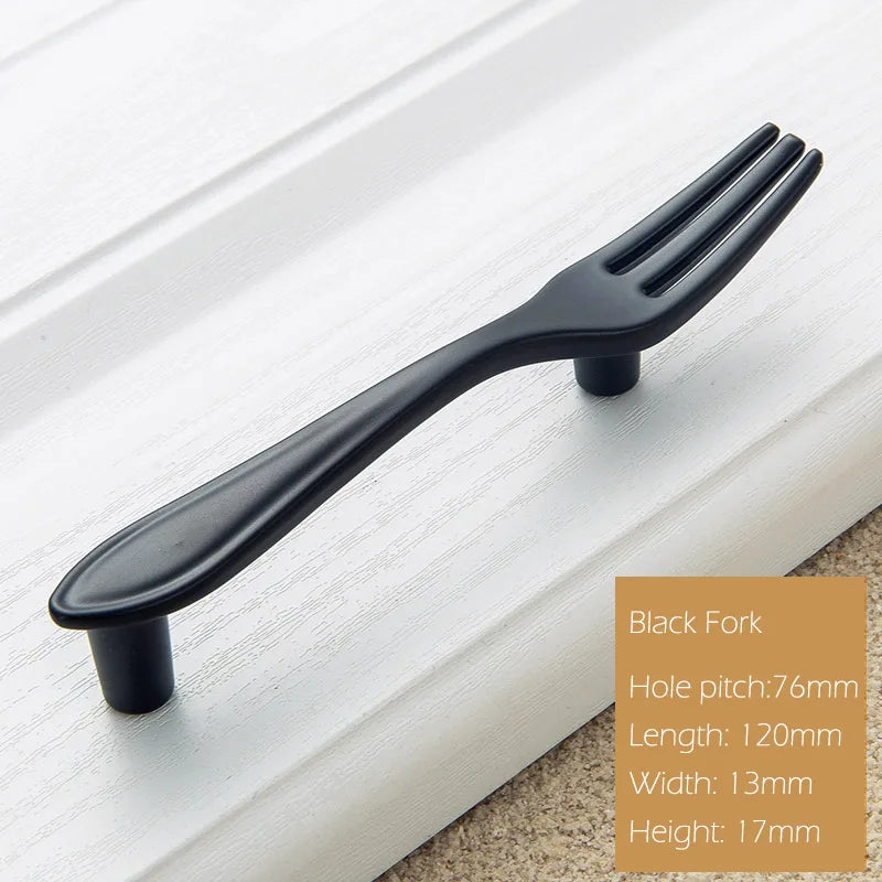 Aggiorna i tuoi armadietti con le Maniglie per Armadietti in Lega di Zinco dal design moderno europeo elegante. Realizzate in lega di zinco durevole e disponibili in diverse opzioni (Nero, Bronzo, Filo Trattato, Cromo Lucido, Oro, Argento), queste maniglie con distanza di 76 mm tra i fori sono costruite per durare e resistere allo sbiadimento nel corso degli anni di utilizzo quotidiano. Le silhouette di forchetta, cucchiaio e coltello offrono un aspetto raffinato e versatile che si adatta a mobili da cucina, armadietti, porte e cassetti. Ogni ordine include la maniglia con viti per un'installazione rapida e senza problemi. Provenienti dalla Cina continentale con il modello Maniglia-forchetta, queste maniglie sono progettate per una facile estrazione e una bellezza duratura, rendendole un aggiornamento perfetto per l'hardware dei tuoi mobili.