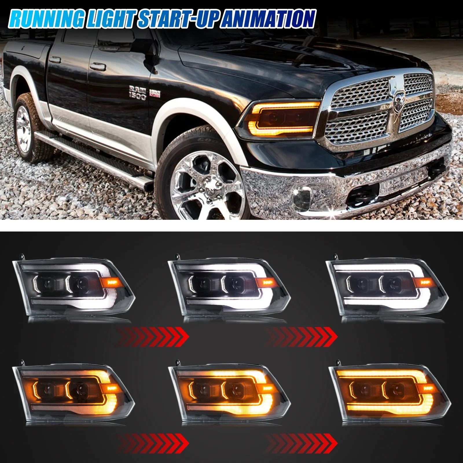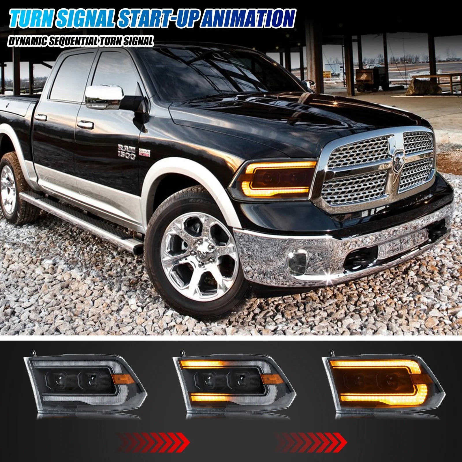 Fari a LED Dodge Ram 2009-2018 con Proiettore DRL, Indicatori Sequenziali