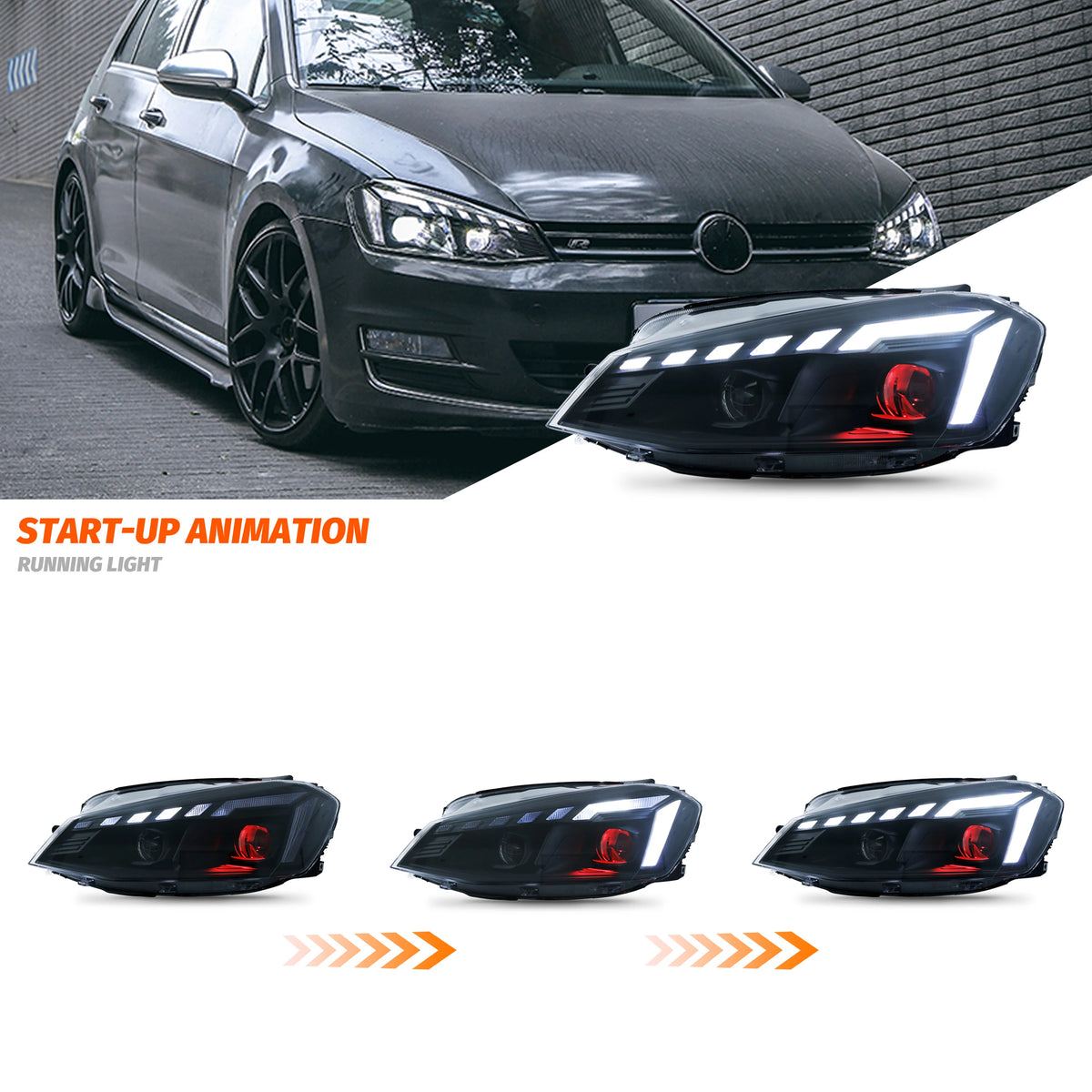 Fari a LED Xunder per Volkswagen Golf 7 MK7 2013-2017 Proiettore DRL Lampade anteriori con indicatori di direzione sequenziali Coppia