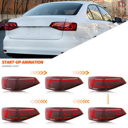 Luci posteriori a LED per Volkswagen Jetta 2015 2018 GLI MK6 Segnali di svolta sequenziali con animazione dinamica Rosso Assemblaggio lampada posteriore