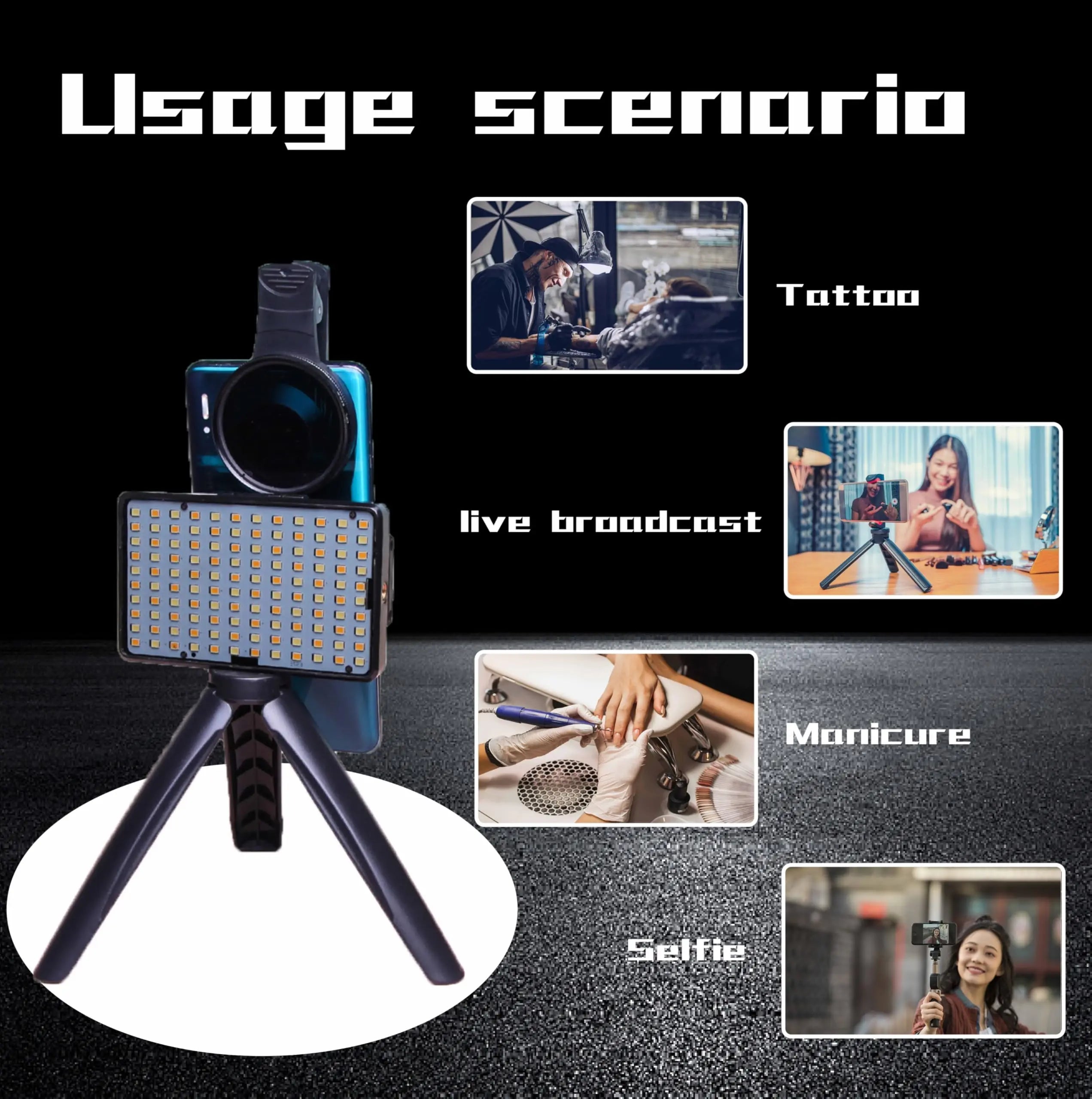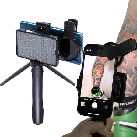 Incontra la Luce per Fotografia di Tatuaggi a LED con Filtro CPL da 52mm per Telefono di JC TATTOO — una soluzione di illuminazione compatta e ad alte prestazioni progettata per elevare la fotografia di tatuaggi con il tuo smartphone. Il TF006 in lega offre un'illuminazione brillante e uniforme attraverso 120 LED ad alta luminosità e presenta un display OLED intuitivo per regolazioni rapide. Il filtro polarizzatore CPL da 52mm incluso rimuove i riflessi e l'inquinamento luminoso dai tatuaggi, migliorando il contrasto e la saturazione dei colori per scatti più puliti e professionali con il cellulare. Con una batteria integrata da 3100mAh, ottieni un'alimentazione duratura (fino a ~3,5 ore) così puoi scattare con fiducia ovunque. Progettata per la compatibilità con le lenti dei cellulari, questa luce versatile ti aiuta a catturare immagini di tatuaggi nitide e realistiche senza attrezzature ingombranti.