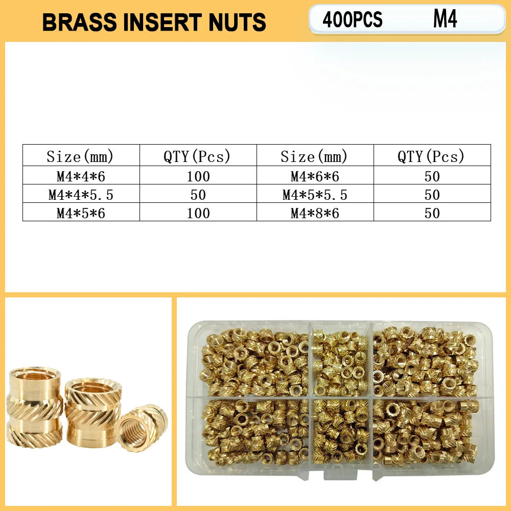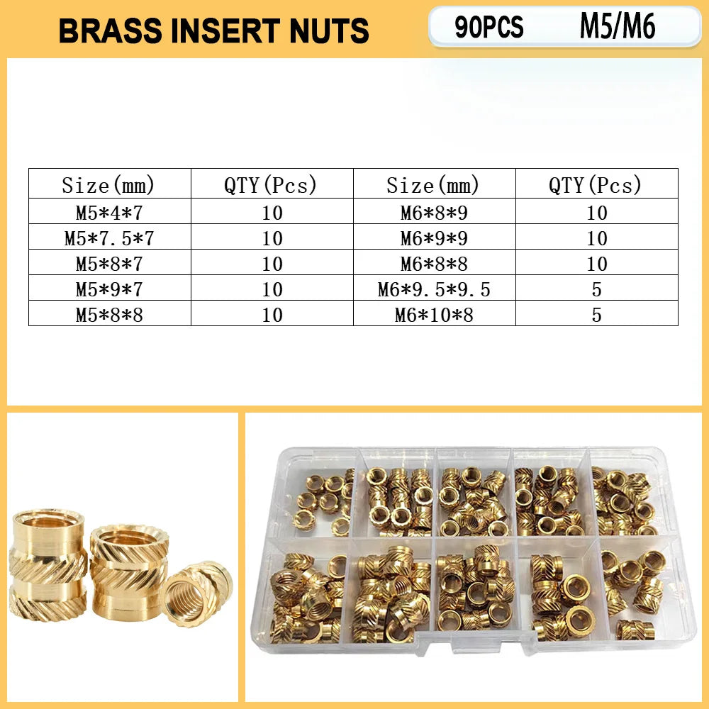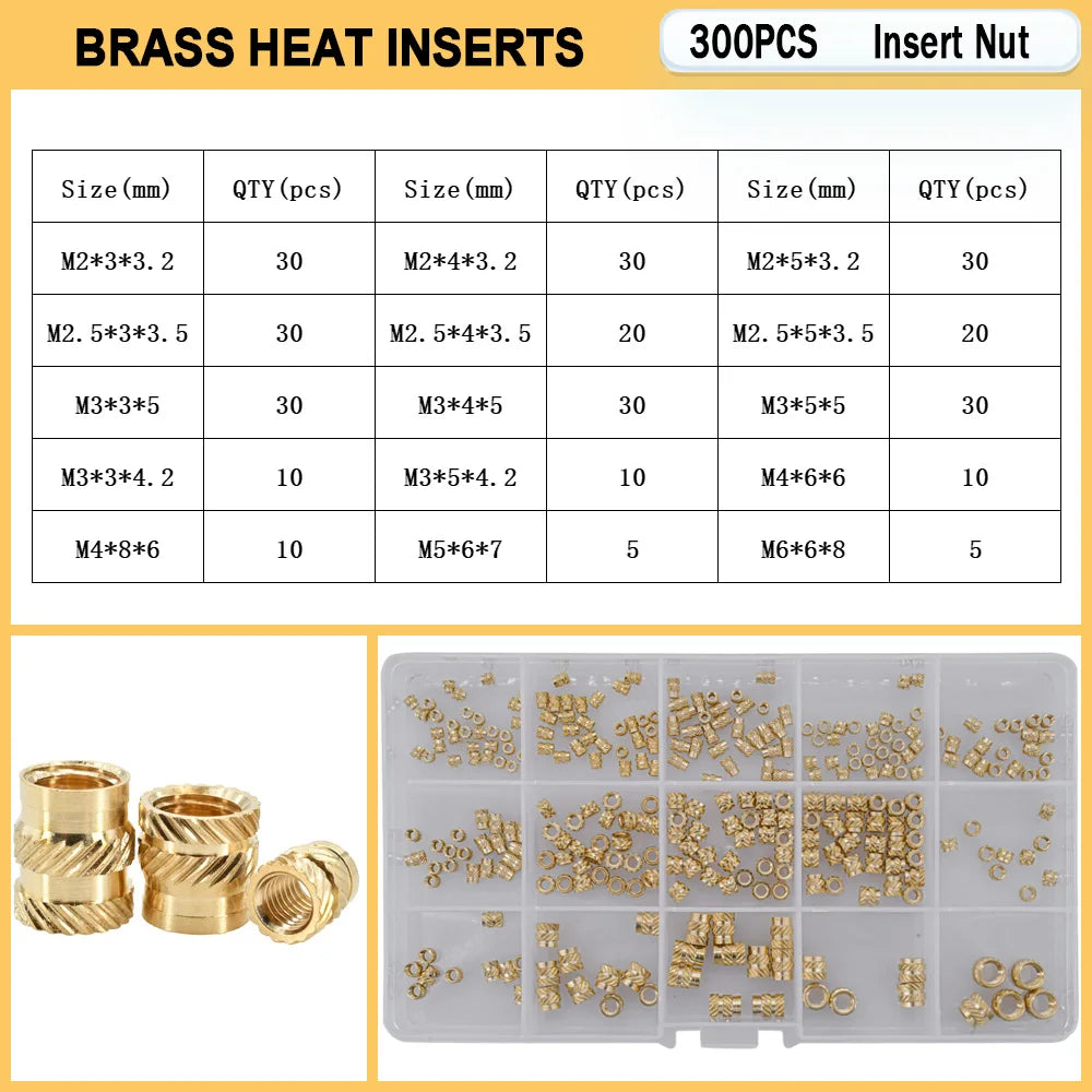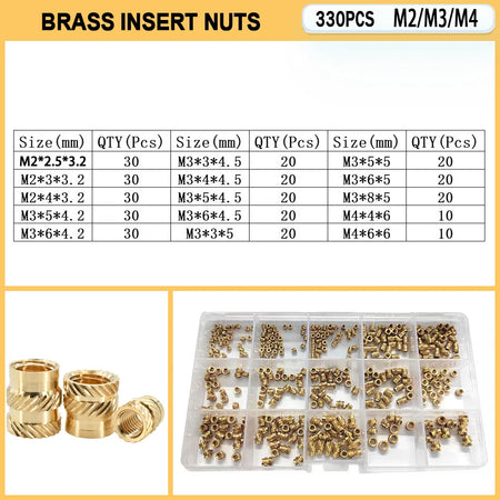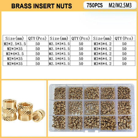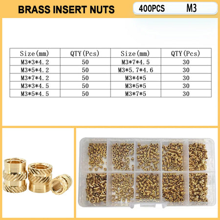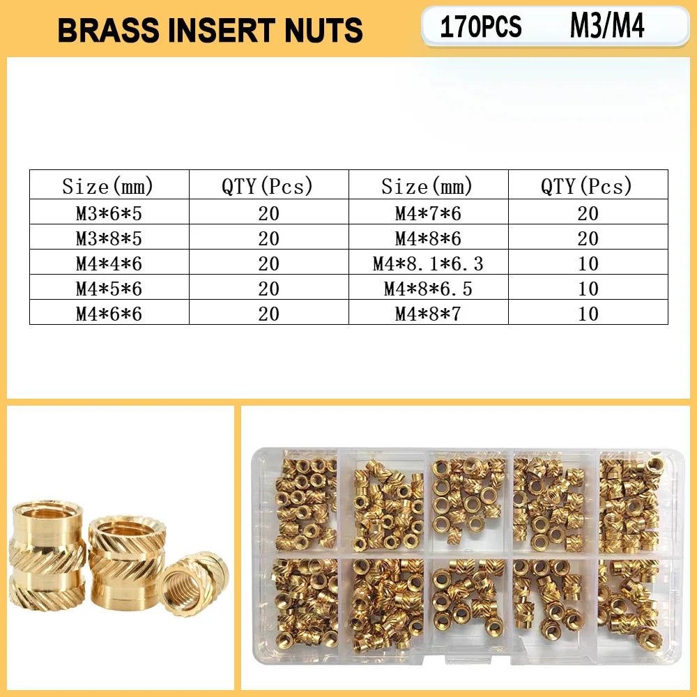 Incontra il kit di dadi a inserto in ottone M2 a M6 zigrinati per la stampa 3D — una collezione essenziale per aggiungere filetti metallici durevoli alle tue parti in plastica. Questo kit di sei dimensioni copre gli inserti M2, M2.5, M3, M4, M5 e M6, ciascuno con un esterno zigrinato che afferra il materiale ospite per una vestibilità sicura e duratura. Perfetto per involucri stampati in 3D, pannelli di montaggio e progetti hobby che richiedono un'assemblaggio e disassemblaggio affidabili. Dimensione del dado a inserto in ottone = diametro interno * altezza * diametro esterno.