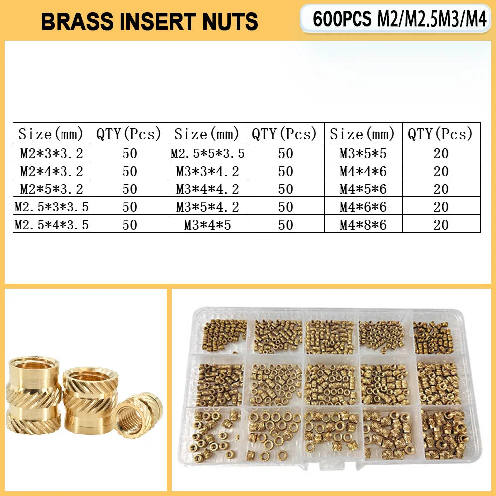 - 6 pezzi di dadi a inserti zigrinati nelle dimensioni M2, M2.5, M3, M4, M5, M6