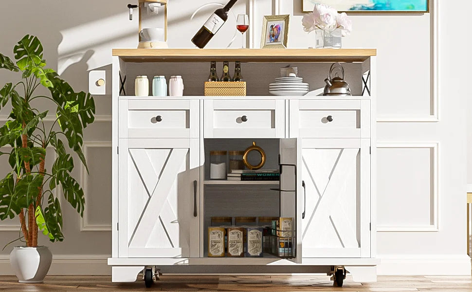 Presentiamo l'Isola da Cucina Moderna su Ruote con Pannelli Laterali Pieghevoli — una postazione di lavoro versatile e mobile progettata per massimizzare lo spazio della tua cucina o ristorante. Misurando 118 cm di lunghezza, 43 cm di larghezza e 98 cm di altezza, questo carrello offre una superficie robusta per la preparazione dei pasti e un'estensione intelligente che si trasforma in un grande tavolo da pranzo quando necessario. I pannelli laterali pieghevoli si estendono fino a 80 cm, creando ampio spazio per servire gli ospiti o espandere l'area di lavoro durante le ore di punta.