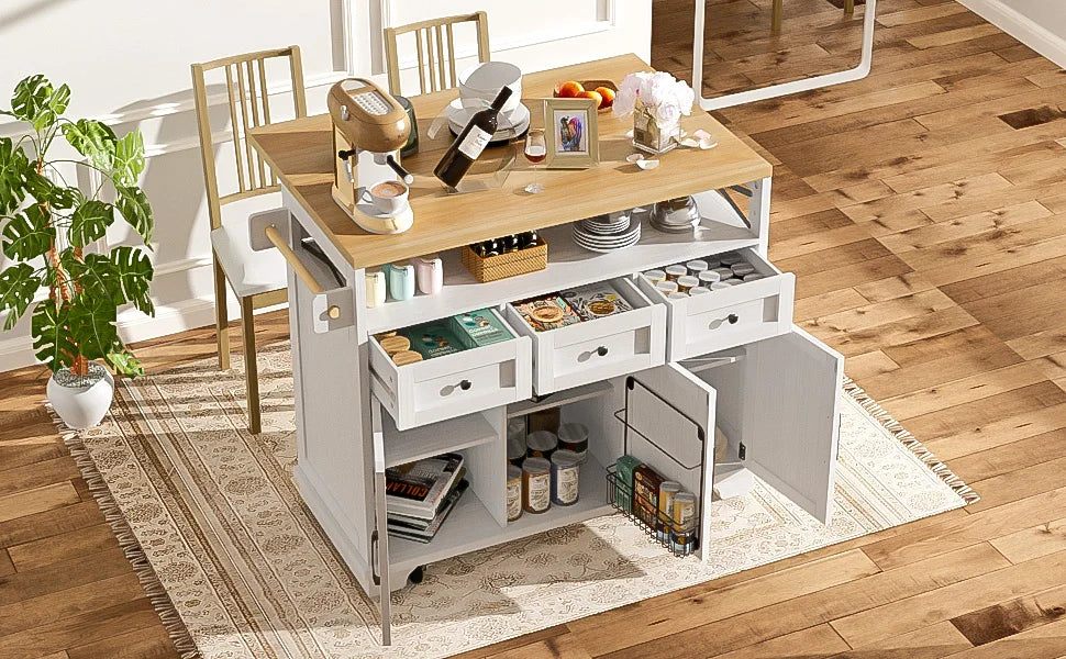 - 1 x Isola da Cucina Moderna su Ruote con Pannelli Laterali Pieghevoli