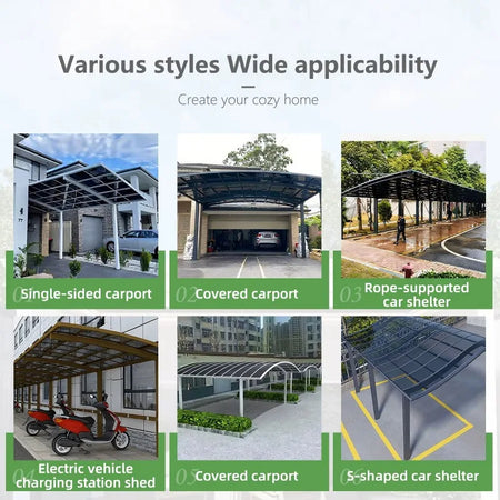 Scopri il Carport Portatile in Alluminio con Tetto in Policarbonato per il parcheggio all'aperto—un riparo versatile e resistente alle intemperie progettato per proteggere i tuoi veicoli e l'attrezzatura esterna. Realizzato con una struttura in lega di alluminio e una finitura resistente a polvere, questo carport combina leggerezza e robustezza duratura. Il tetto in policarbonato unisce visibilità chiara a una superiore resistenza alla pioggia, aiutando a mantenere la tua auto protetta da sole, pioggia e detriti lasciando però entrare la luce naturale.