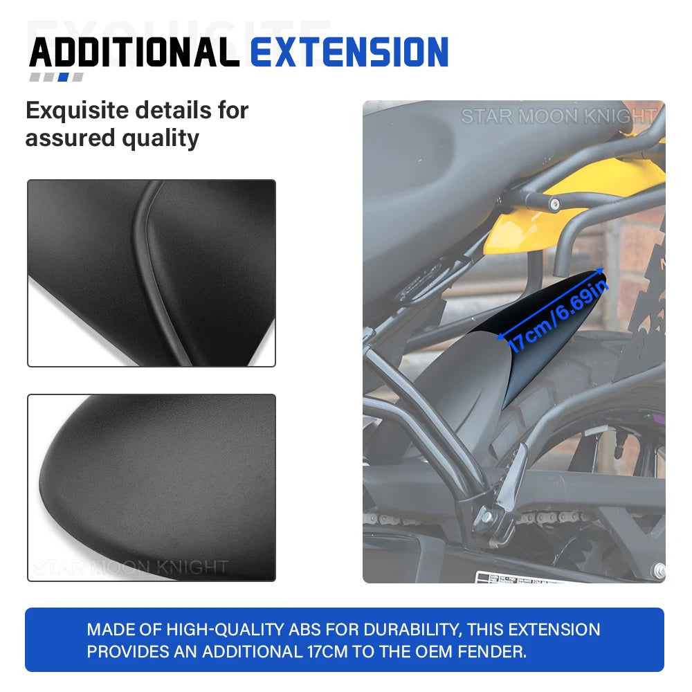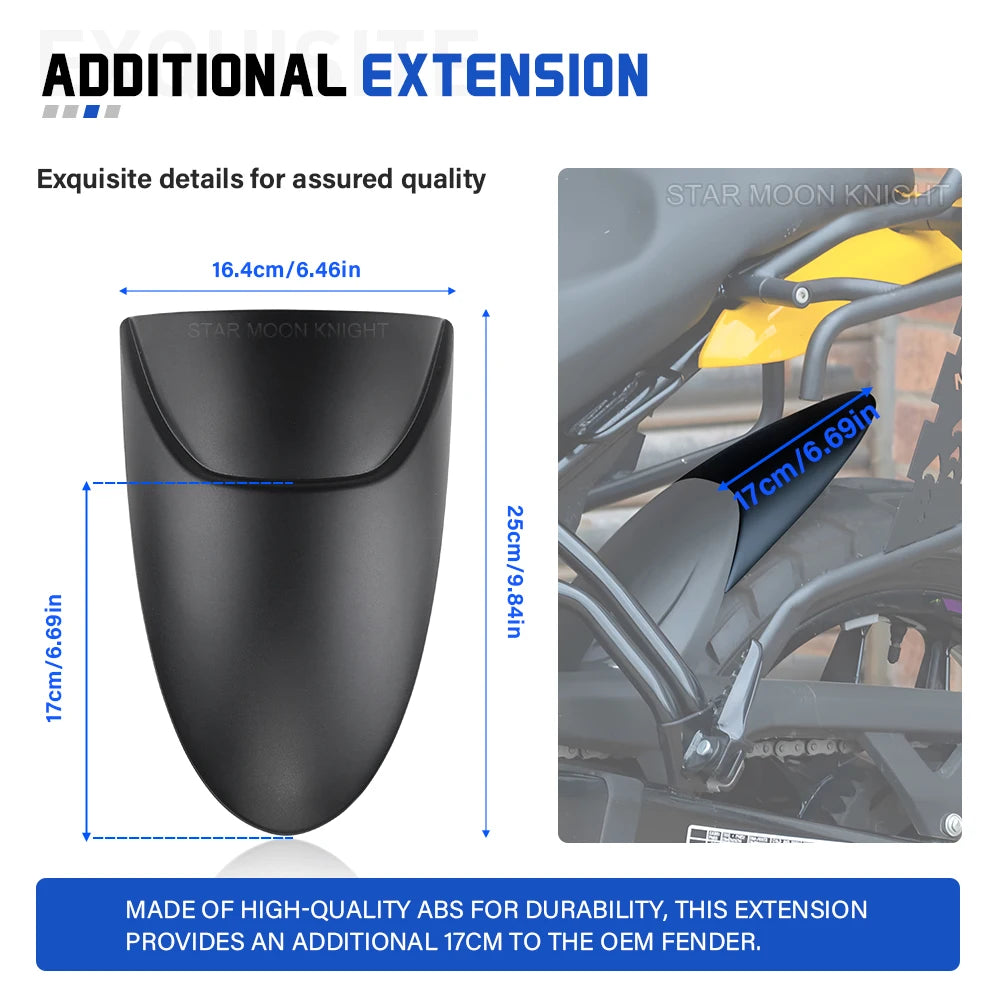 Migliora la tua guida con il Parafango posteriore Himalayan 450 Guerrilla 450 con estensione para schizzi — un protettore impermeabile progettato per tenere fango, pioggia e detriti lontani da te e dalla tua moto in ogni uscita. Realizzato in plastica ABS resistente, questo accessorio 100% nuovo di zecca aggiunge un'estensione sostanziale di 17 cm (6,69 in) al tuo parafango anteriore OEM, offrendo una copertura migliorata e una guida più pulita in condizioni di bagnato e fango.