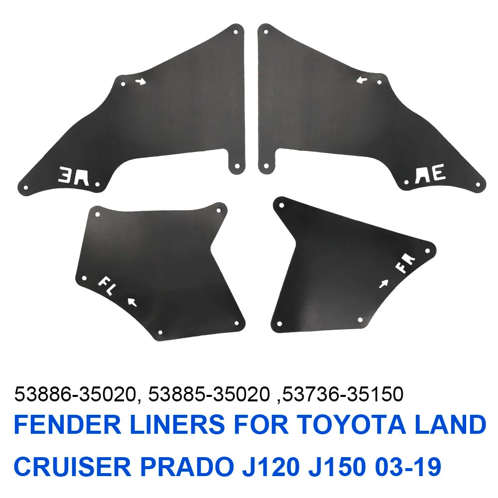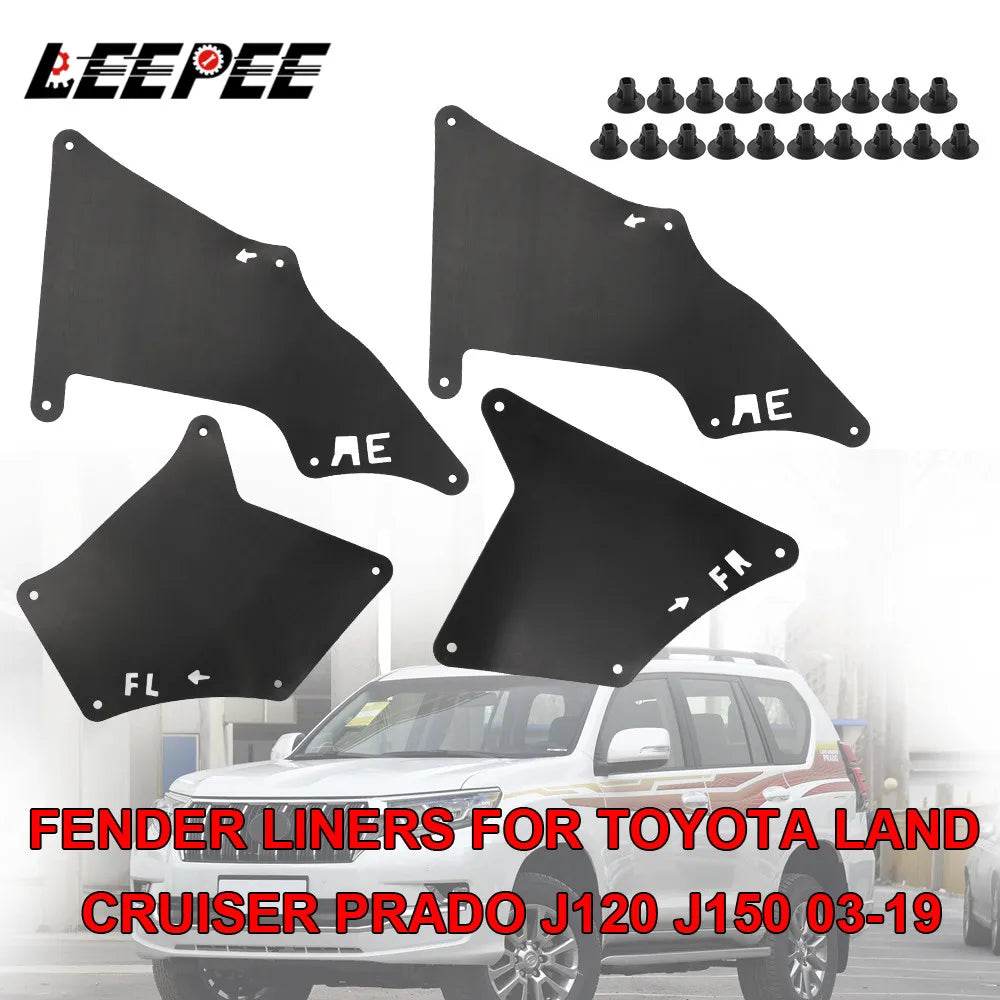 Migliora la protezione e l'aspetto della tua Toyota Land Cruiser Prado con questo set di parafanghi a quattro pezzi progettato per Prado J120/J150 dal 2003 al 2019. Realizzati in plastica rigida, questi parafanghi sono modellati secondo i contorni del veicolo per una vestibilità precisa, quasi senza soluzione di continuità. Proteggono il vano motore, il sottoscocca e i passaruota da acqua, fango, pietre e detriti stradali, contribuendo a ridurre i tempi di manutenzione e a mantenere il tuo veicolo più pulito dopo avventure fuoristrada o giornate piovose.