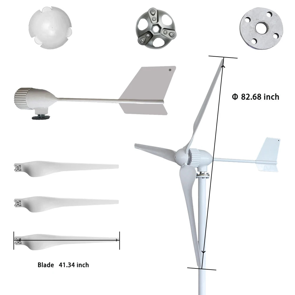Presentiamo il Nuovo Arrivo 5000W Turbina Eolica Orizzontale MPPT 12V 96V, una soluzione di energia eolica ad alta efficienza progettata per un'energia affidabile off-grid. Questa turbina da 5 kW sfrutta un controller MPPT per ottimizzare la raccolta di energia su un'ampia gamma di venti, fornendo una ricarica costante al tuo banco batterie. Con supporto multi-voltaggio (12V, 24V, 48V e 96V), si adatta perfettamente a diverse configurazioni di sistema, rendendola una scelta versatile per case, cabine o installazioni remote. Il modello M5 durevole presenta un robusto albero in ferro e una finitura bianca pulita, con certificazione CE per tranquillità. Sono disponibili opzioni di personalizzazione per adattarsi alla tua configurazione specifica, e le pale offrono un diametro compatto di 0,95 m per prestazioni stabili in condizioni di vento variabili.