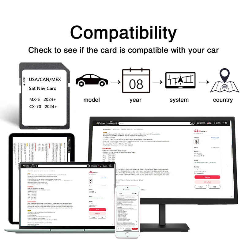 Perfetto per i proprietari di Mazda CX70 e MX5, viaggiatori su strada e conducenti di flotte, supportato da garanzia di qualità. Aggiungi navigazione accurata al tuo veicolo oggi — aggiorna le tue mappe e goditi percorsi più chiari e indicazioni più rapide. Utilizzalo nel sistema GPS multimediale della tua auto ogni volta che hai bisogno di navigazione affidabile; promessa di soddisfazione inclusa.