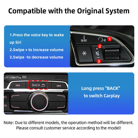 - Nota di compatibilità: Per determinare se il tuo veicolo può installare questa interfaccia CarPlay Audi, contatta il nostro supporto clienti inviando foto della console centrale della tua auto