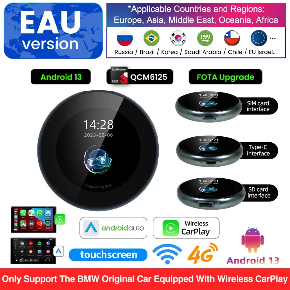 La guida tutto il giorno è diventata più intelligente con l'ANYFAR BMW ID6/ID7/ID8/ID9 Wireless CarPlay Android 13 AI Box, un aggiornamento dello schermo OEM progettato per elevare l'infotainment della tua BMW. Questo modulo aggiunge la capacità di CarPlay wireless mantenendo le opzioni di CarPlay cablato, così puoi connetterti rapidamente sia che tu stia accoppiando via Bluetooth in movimento o utilizzando un cavo diretto. È progettato per i modelli BMW e altri veicoli che supportano CarPlay, trasformando il tuo abitacolo in un hub connesso e reattivo. Alimentato da un processore Qualcomm 6125 Octa-core, questa AI Box offre avvii rapidi delle app, navigazione fluida e risposte rapide del sistema. Eseguendo Android 13 con il framework Google Mobile Services (GMS), ti dà accesso al Google Play Store, app pratiche e aggiornamenti affidabili. La memoria LPDDR4 da 4GB integrata e lo storage eMMC da 64GB forniscono ampio spazio per mappe, musica e app preferite, così puoi passare da un'attività all'altra senza rallentamenti. Un'esperienza di navigazione e intrattenimento sempre online è supportata dalla connettività della scheda SIM, mentre una scheda TF (fino a 128GB) espande lo storage per mappe e media offline. Il touchscreen reattivo può visualizzare l'orologio, la velocità e altre informazioni che desideri a colpo d'occhio, mantenendo i dati essenziali proprio dove ne hai bisogno. Questo aggiornamento si integra perfettamente con l'interfaccia esistente della tua BMW, offrendo un'esperienza di guida moderna e intuitiva. Non importa la marca del tuo telefono, puoi goderti CarPlay wireless, aggiornamenti delle mappe, streaming musicale e controllo a mani libere mantenendo l'aspetto e la sensazione originali del tuo veicolo. Tutte le attrezzature elettroniche e meccaniche, dispositivi e macchine venduti da InterCyprus ai paesi dell'UE sono certificati CE e hanno una garanzia di due anni. Su intercyprus.com dal 2002 — fidato per qualità e affidabilità. Vantaggi & Suggerimenti