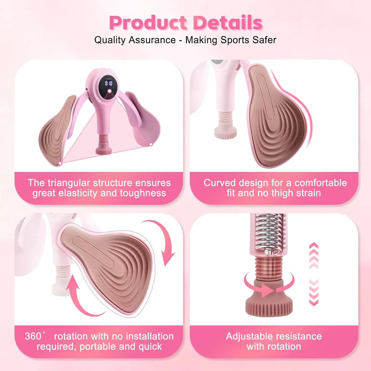 - Rinforzo mirato del pavimento pelvico e dell'interno coscia per supportare la stabilità del core, la continenza e la salute pelvica generale — ideale per il recupero post parto e il fitness quotidiano.
