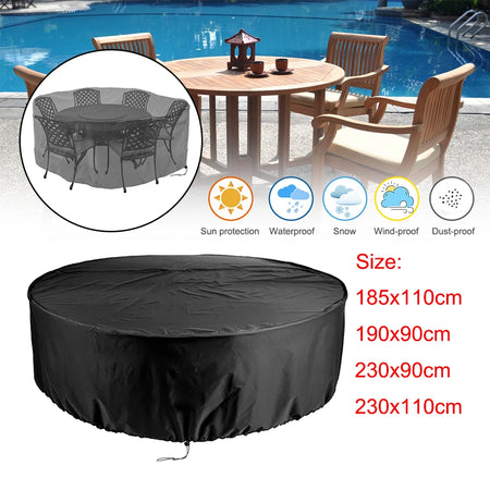 Proteggi il tuo tavolo e le tue sedie da esterno dalla pioggia, dal sole e dalla polvere con la nostra copertura impermeabile per mobili da giardino da esterno. Realizzata in tessuto oxford 210D resistente ai raggi UV in una finitura nera elegante, questa copertura durevole tiene lontana l'umidità e mantiene i colori brillanti. È progettata per adattarsi a una gamma di set di tavoli con più opzioni di dimensione: 185x110 cm, 190x90 cm, 230x90 cm e 230x110 cm. Costruita per l'uso all'aperto, combina protezione impermeabile con facile maneggevolezza, così puoi goderti un patio più pulito con meno manutenzione.