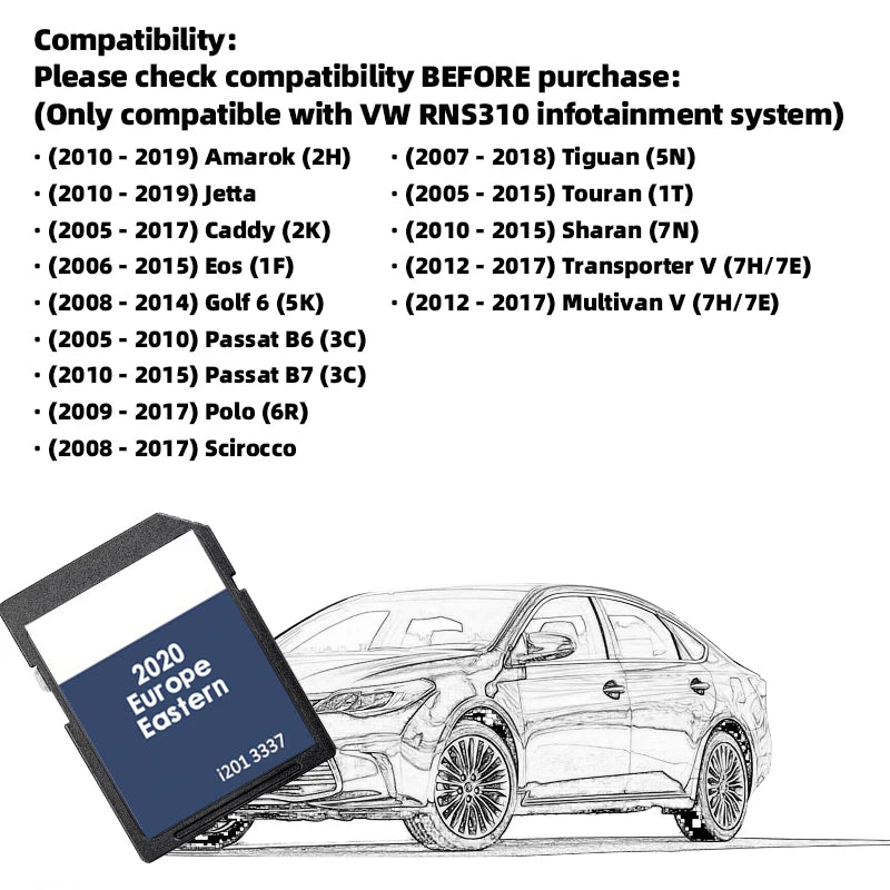 - Formato scheda SD plug-and-play compatibile con i sistemi di navigazione automobilistica RNS310