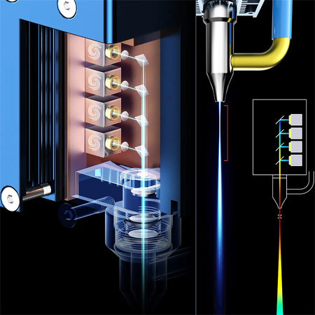 Durabilità e versatilità si uniscono con una lente protettiva sostituibile, estendendo la vita del laser di oltre 10 volte. Quando la lente si usura o si danneggia, basta sostituirla per ripristinare la potenza di taglio massima. L'area di incisione standard è di 410x400mm e il design supporta l'espansione: aggiungi un kit per l'asse Y per raggiungere 935x400mm, o un kit per gli assi XY per arrivare fino a 935x905mm. Questo rende facile affrontare progetti di incisione o taglio di grande formato senza acquistare una nuova macchina.