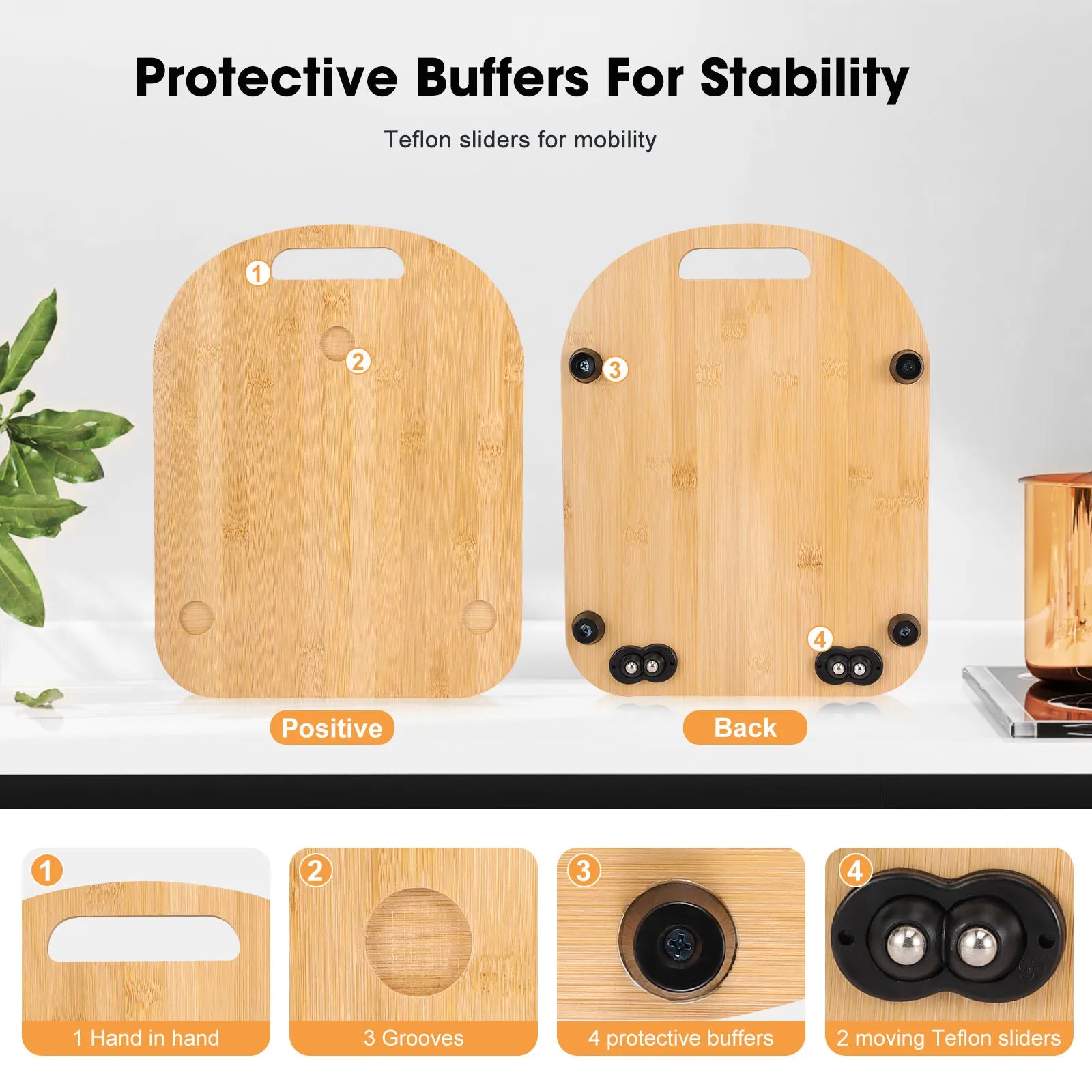 La resistenza all'acqua e all'olio protegge la superficie da fuoriuscite e umidità. Basta sciacquare con acqua per pulire e mantenere la finitura impeccabile. La finitura in bambù dona un aspetto moderno e minimalista a qualsiasi cucina e lo rende un regalo premuroso per i professionisti della cucina.