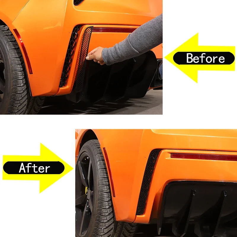 - Aggiornamento estetico istantaneo: aggiunge un tocco moderno e sportivo all'area dell'uscita aria posteriore senza modificare i componenti OEM.