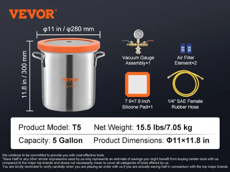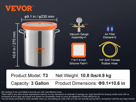 Presentiamo la camera di degassificazione a vuoto con coperchio in vetro temperato da 3 galloni / 5 galloni. Costruita con un corpo resistente in acciaio inossidabile 304 ad alta pressione e un robusto coperchio in vetro temperato, questa camera offre prestazioni affidabili e resistenti alla corrosione per una degassificazione senza bolle. È ideale per stabilizzare il legno, lavorare con sostanze volatili o corrosive e aspirare silicone, resina, poliuretano e altro. Il coperchio trasparente ti permette di monitorare l'intero processo di evacuazione, mentre la guarnizione robusta mantiene il sistema ermetico anche in condizioni di vuoto assoluto.