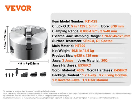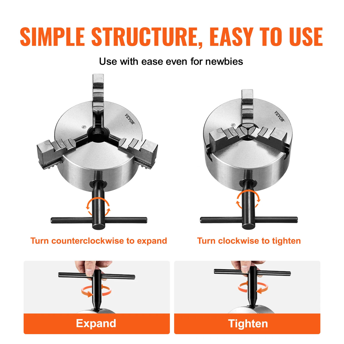 - Precisione senza sforzo: Affidati al meccanismo autocentrante e all’ingranaggio conico di precisione per ottenere risultati ripetibili e ad alta precisione con setup minimo.