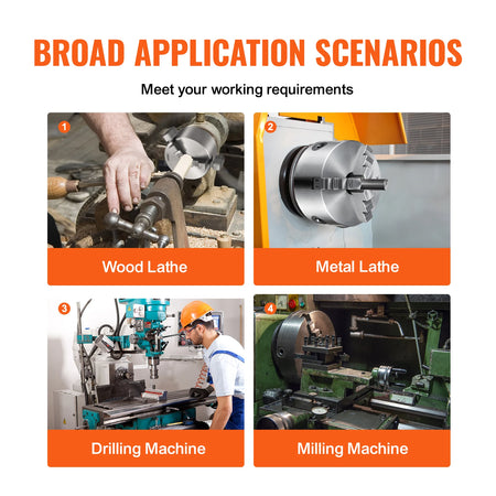 Intuitivo da usare, il mandrino presenta un meccanismo autocentrante integrato e un design compatto per un’installazione facile. Le griffe sono regolabili tramite una chiave a T, permettendo un rapido adattamento a diverse dimensioni e forme. Questo lo rende una scelta eccellente per operazioni di tornitura, foratura e fresatura su una gamma di modelli di torni, aumentando efficienza e versatilità in qualsiasi officina metalmeccanica.