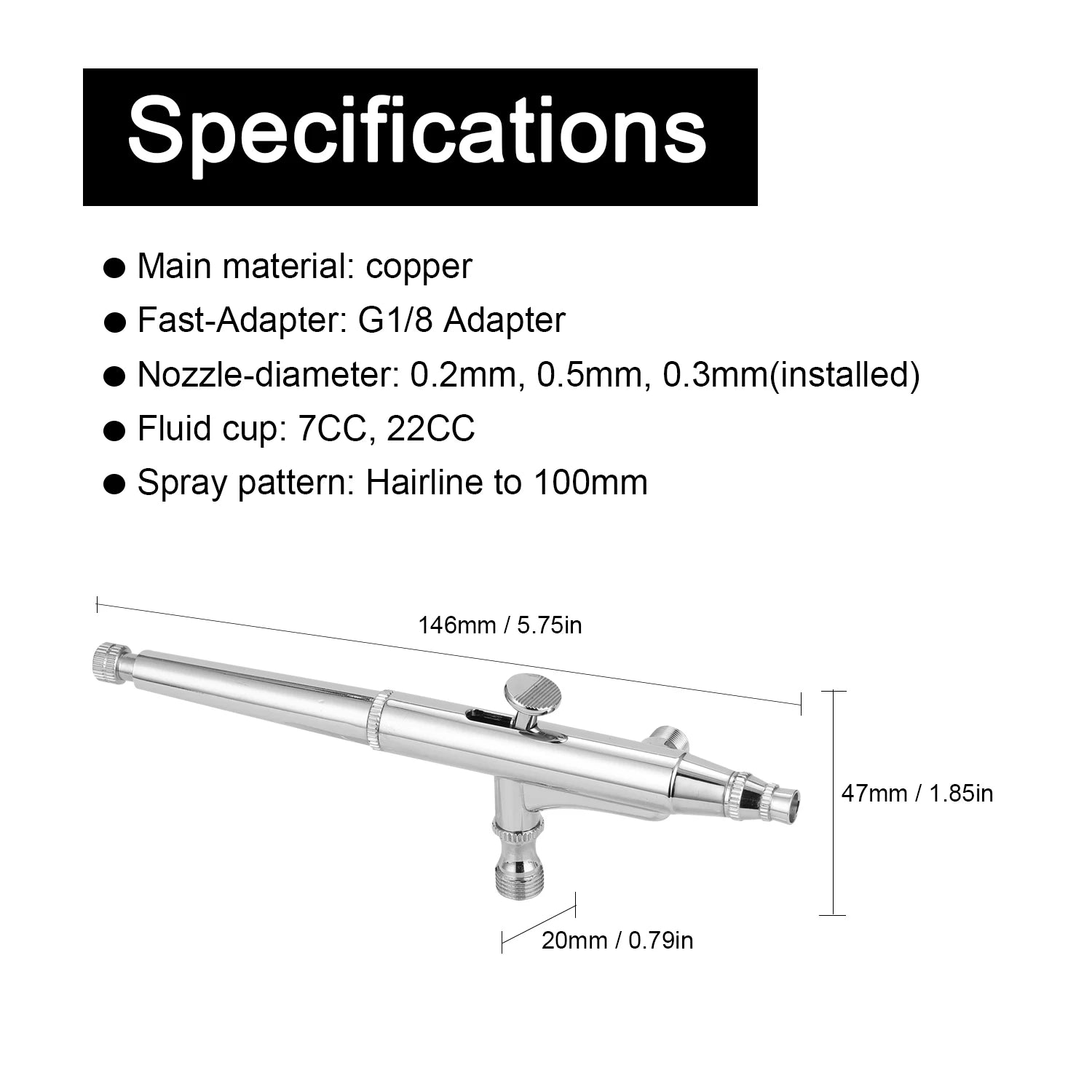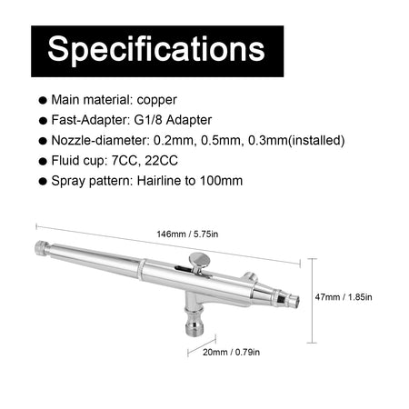 - Dimensioni dell'airbrush: 146 × 47 × 20 mm