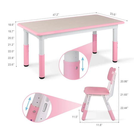 Presentiamo il Set Tavolo Regolabile per Bambini con 4 Sedie—una soluzione d'arredo essenziale e pronta a crescere per gioco, studio e pasti. Realizzato in HDPE e PVC ecologici e non tossici, questo set di 5 pezzi è progettato per resistere ai bambini attivi mantenendo la sicurezza al primo posto. Con certificazione CPC e attenzione alla stabilità, è una scelta affidabile per case, aule e sale giochi.