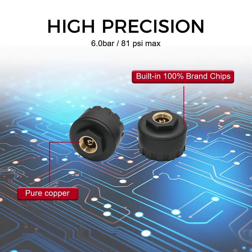 Incontra il LEEPEE 31209 Sistema di Monitoraggio della Pressione dei Pneumatici con Display Digitale, un compagno intelligente per il monitoraggio dei pneumatici progettato per mantenerti più sicuro su ogni strada. Con un pannello di ricarica solare accompagnato da ricarica USB, offre alta efficienza di ricarica e potenza affidabile, così rimani informato anche durante i lunghi viaggi. Il sistema monitora continuamente la pressione e la temperatura di tutti e quattro i pneumatici e presenta le informazioni su un display LCD colorato e facile da leggere. Una corretta pressione dei pneumatici è essenziale per una maneggevolezza sicura, una migliore efficienza del carburante e una maggiore durata dei pneumatici, e questo TPMS rende semplice mantenere le letture nell'intervallo ottimale. Quando qualcosa sembra non andare, avvisi in tempo reale—suoni e icone lampeggianti sullo schermo—ti invitano ad agire prima che il problema si trasformi in una situazione pericolosa.