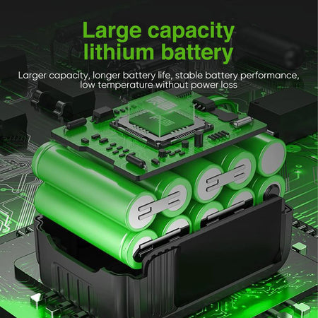 - Design efficiente e senza spazzole: maggiore durata della batteria e funzionamento più fresco per un uso prolungato in officine, garage o pulizie all'aperto.