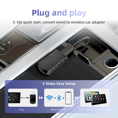 - Vivi una vera esperienza di guida senza cavi: converti il tuo CarPlay cablato e Android Auto cablato in esperienze wireless, riducendo l'ingombro dei cavi sul cruscotto.